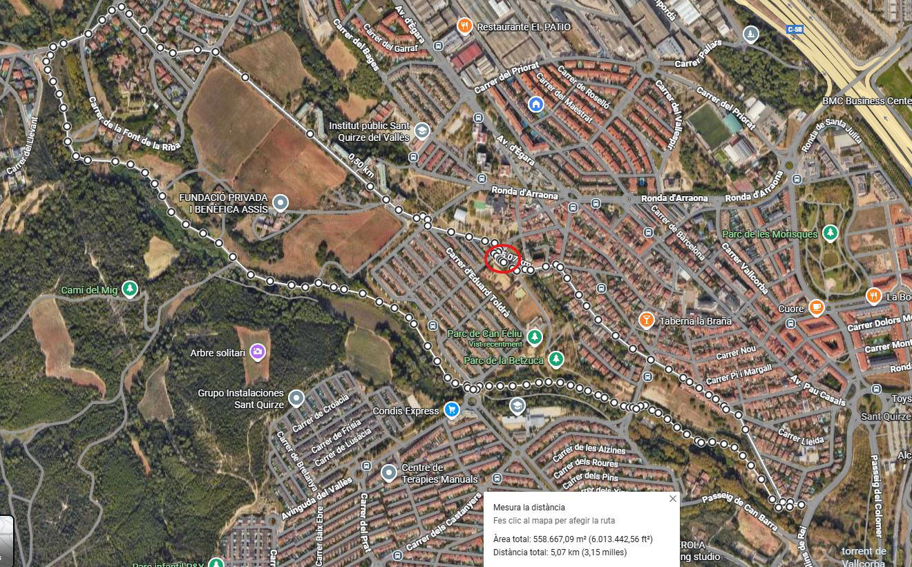 The walk will cover approximately 5,000 meters. The route is entirely urban and on an asphalt surface. The start and finish will be located at Masia Can Feliu.